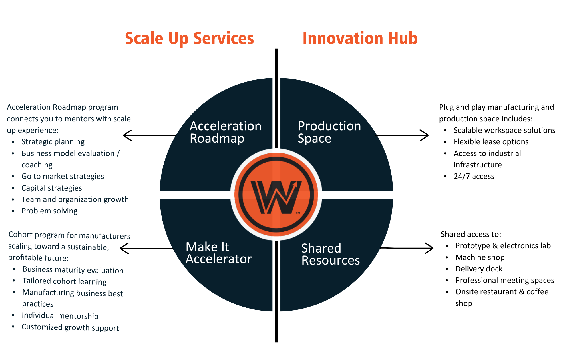 At the Warehouse Business Accelerator, we have been in the trenches scaling up companies and come out on the other side. We connect tomorrow’s innovative companies with a roadmap for success and the space to grow so you can succeed in scaling into the future. With mentors, infrastructure, and proximity to industry-leading organizations, the Warehouse helps you navigate the inevitable barriers and common pitfalls of scaling up.